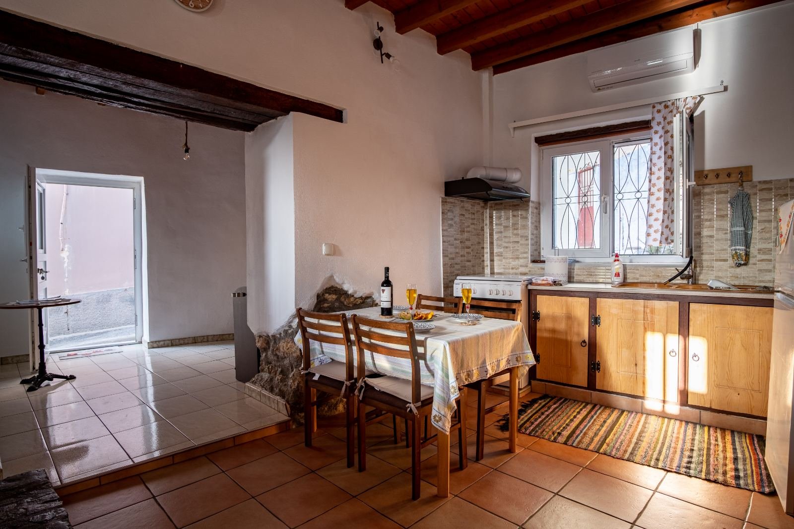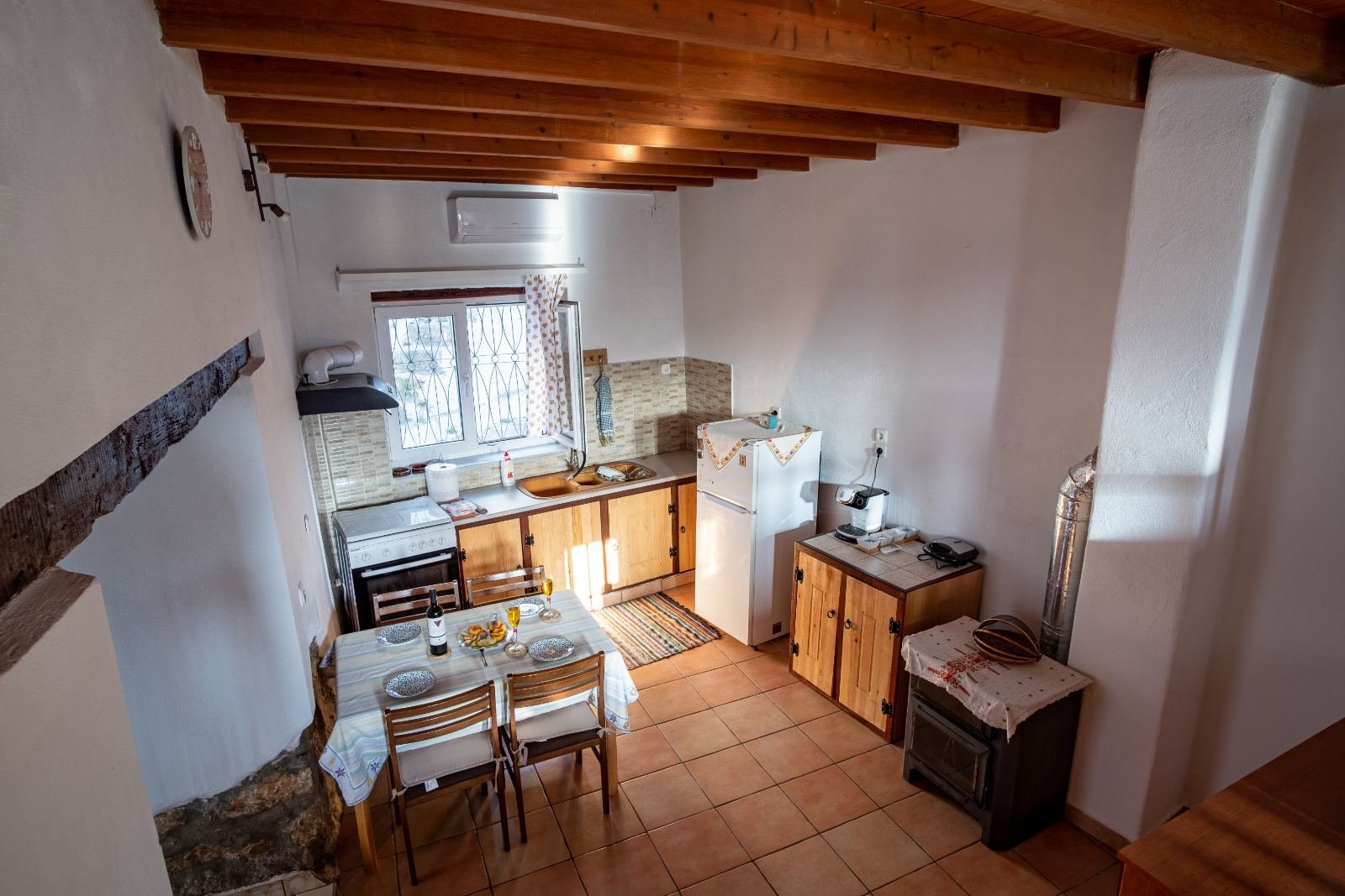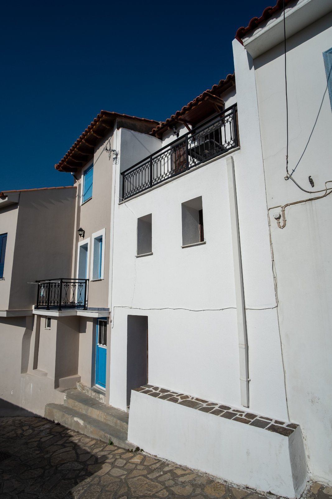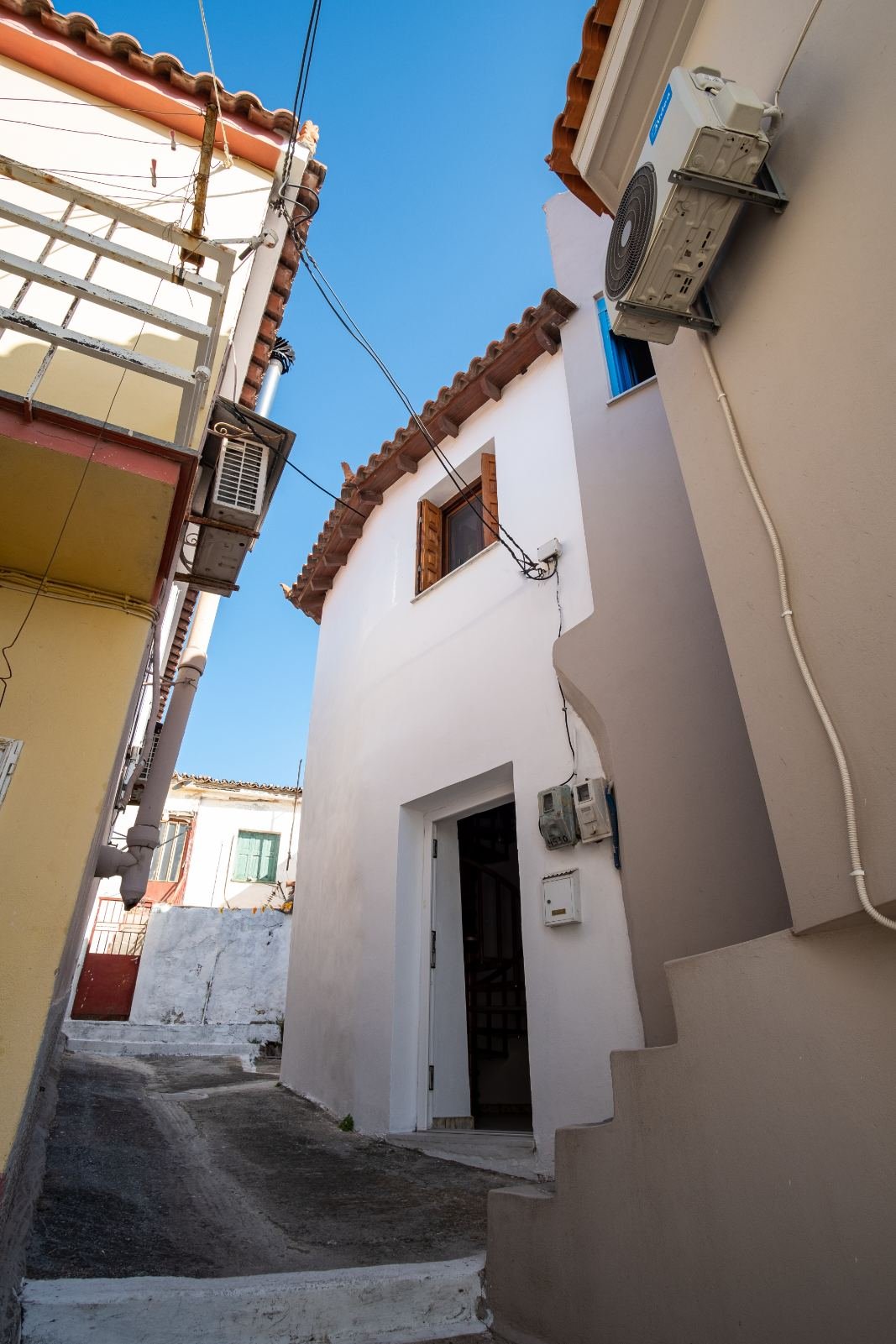 AllBATHROOMSBEDROOM 1BEDROOM 2EXTERIORKITCHENLIVING ROOMVIEW Exterior View - BalconyView of the house's balcony from the main road of the old town. Kitchen and Main EntranceThe kitchen of the house is spacious and fully equipped. Living Room - TVThe living room has flat TV with streaming service and playstation HallAfter entering the house you'll find yourselves in the main hall. A traditional spiral ladder leads to the upper floor. Bedroom 1 with BalconyOne of the double rooms in the house. This room is located next to a balcony with a great view at the port. ViewTaste our local cuisine along with our famous wines in our balcony with the wonderful view at the city Exterior View - Main StreetThe old town is full of paved roads and alleys. Just take a relaxing stroll in its beauty. Exterior View - Back viewThe back side of the house is faced to an alley. The bottom window is from the kitchen and the top is from the 2nd double bedroom Exterior View - EntranceThe entrance of the house is located in an alley just a few meters of the main road. Kitchen - Panoramic viewPanoramic view of the kitchen. You can see also the air-condition and the wood stove Living Room - Comfy CouchesJust relax at our comfortable living room and watch your favorite show in the TV after an exhausting but fulfilling day in Samos Bedroom 2Our house provides two separate double rooms. Spacious and comfortable at your disposal. BathroomThe large bathroom is located at the ground floor. Bathroom - Wash machineIf you plan to stay for a long time you should be aware that we provide a wash machine to take care of your clothes Bedroom 1 with BalconyThere is a custom rack for you clothes located in one of the bedrooms.