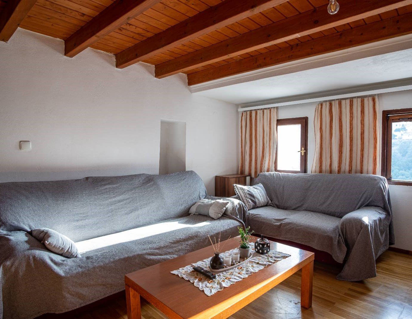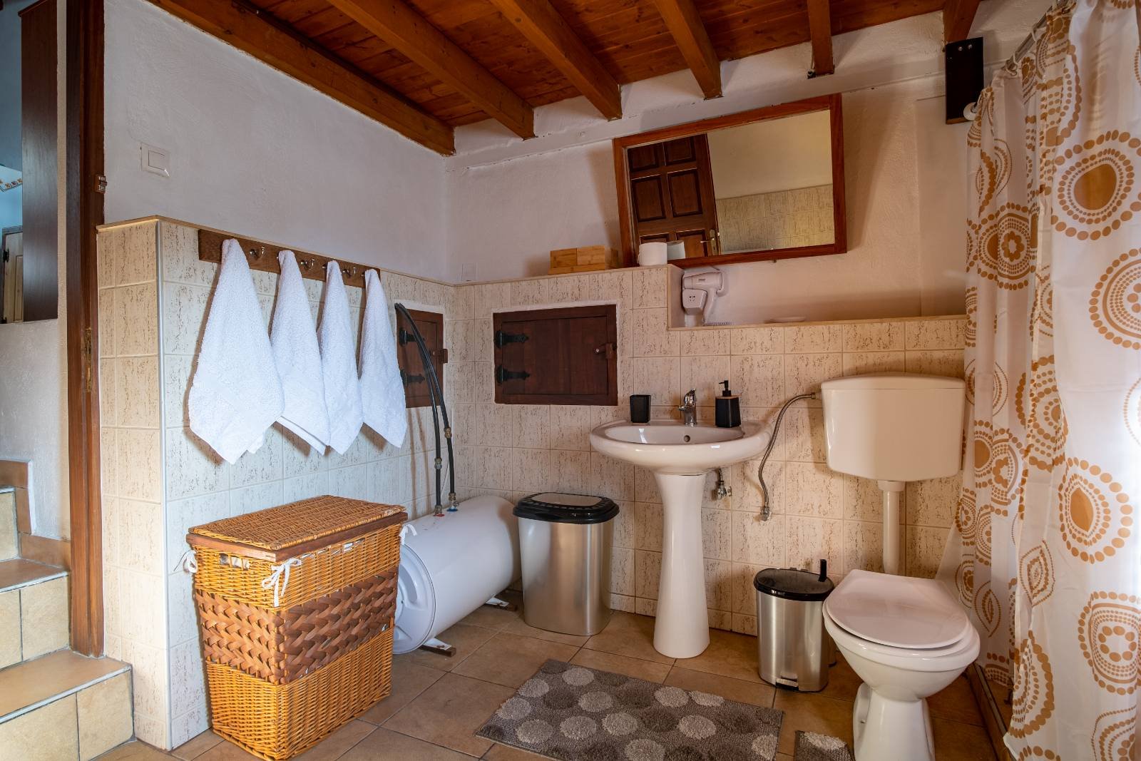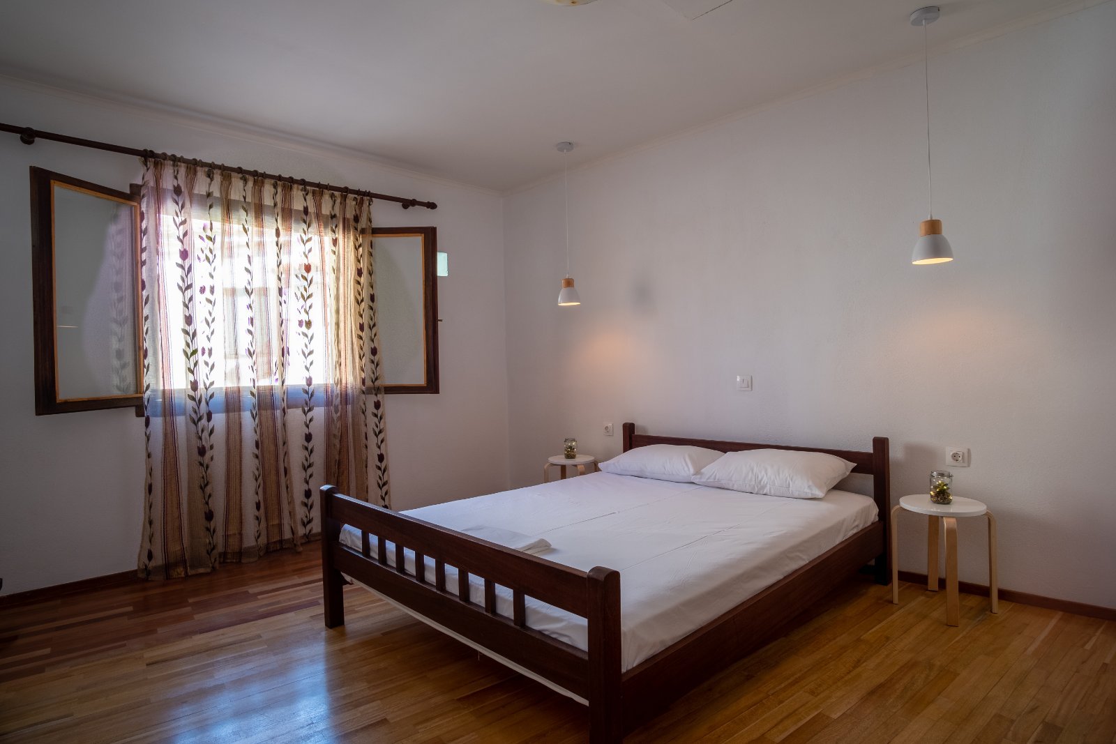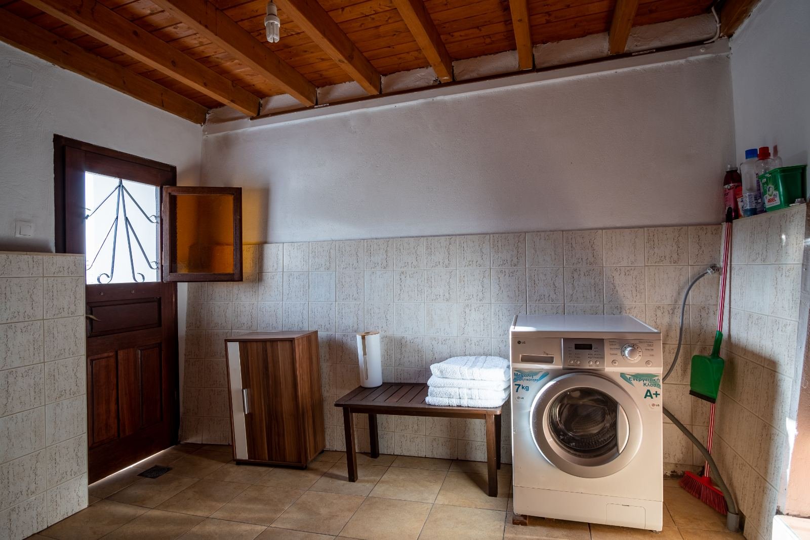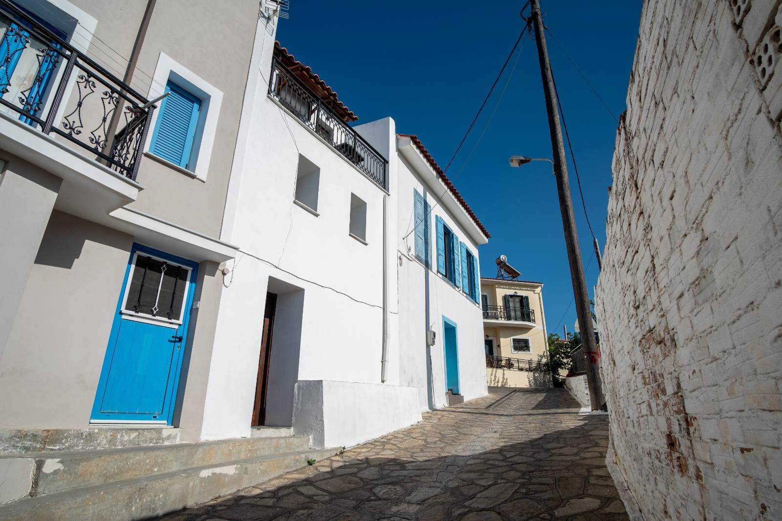 AllBATHROOMSBEDROOM 1BEDROOM 2EXTERIORKITCHENLIVING ROOMVIEW Exterior View - BalconyView of the house's balcony from the main road of the old town. Kitchen and Main EntranceThe kitchen of the house is spacious and fully equipped. Living Room - TVThe living room has flat TV with streaming service and playstation HallAfter entering the house you'll find yourselves in the main hall. A traditional spiral ladder leads to the upper floor. Bedroom 1 with BalconyOne of the double rooms in the house. This room is located next to a balcony with a great view at the port. ViewTaste our local cuisine along with our famous wines in our balcony with the wonderful view at the city Exterior View - Main StreetThe old town is full of paved roads and alleys. Just take a relaxing stroll in its beauty. Exterior View - Back viewThe back side of the house is faced to an alley. The bottom window is from the kitchen and the top is from the 2nd double bedroom Exterior View - EntranceThe entrance of the house is located in an alley just a few meters of the main road. Kitchen - Panoramic viewPanoramic view of the kitchen. You can see also the air-condition and the wood stove Living Room - Comfy CouchesJust relax at our comfortable living room and watch your favorite show in the TV after an exhausting but fulfilling day in Samos Bedroom 2Our house provides two separate double rooms. Spacious and comfortable at your disposal. BathroomThe large bathroom is located at the ground floor. Bathroom - Wash machineIf you plan to stay for a long time you should be aware that we provide a wash machine to take care of your clothes Bedroom 1 with BalconyThere is a custom rack for you clothes located in one of the bedrooms.